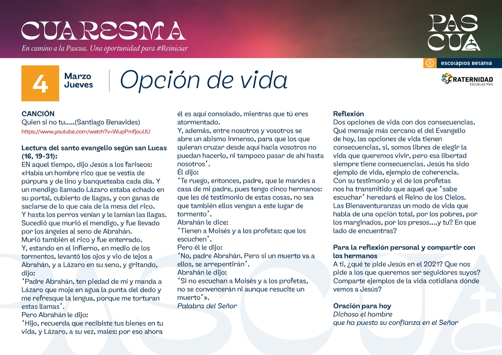 Iremos publicando las peticiones y acciones de gracias que recibamos al final de «la oración de los lunes». Y algunas, las volveremos a compartir en la eucaristía de la Comunidad Cristiana Escolapia (domingo a las 12:30 en la Iglesia Nuestra Señora de Aluche)