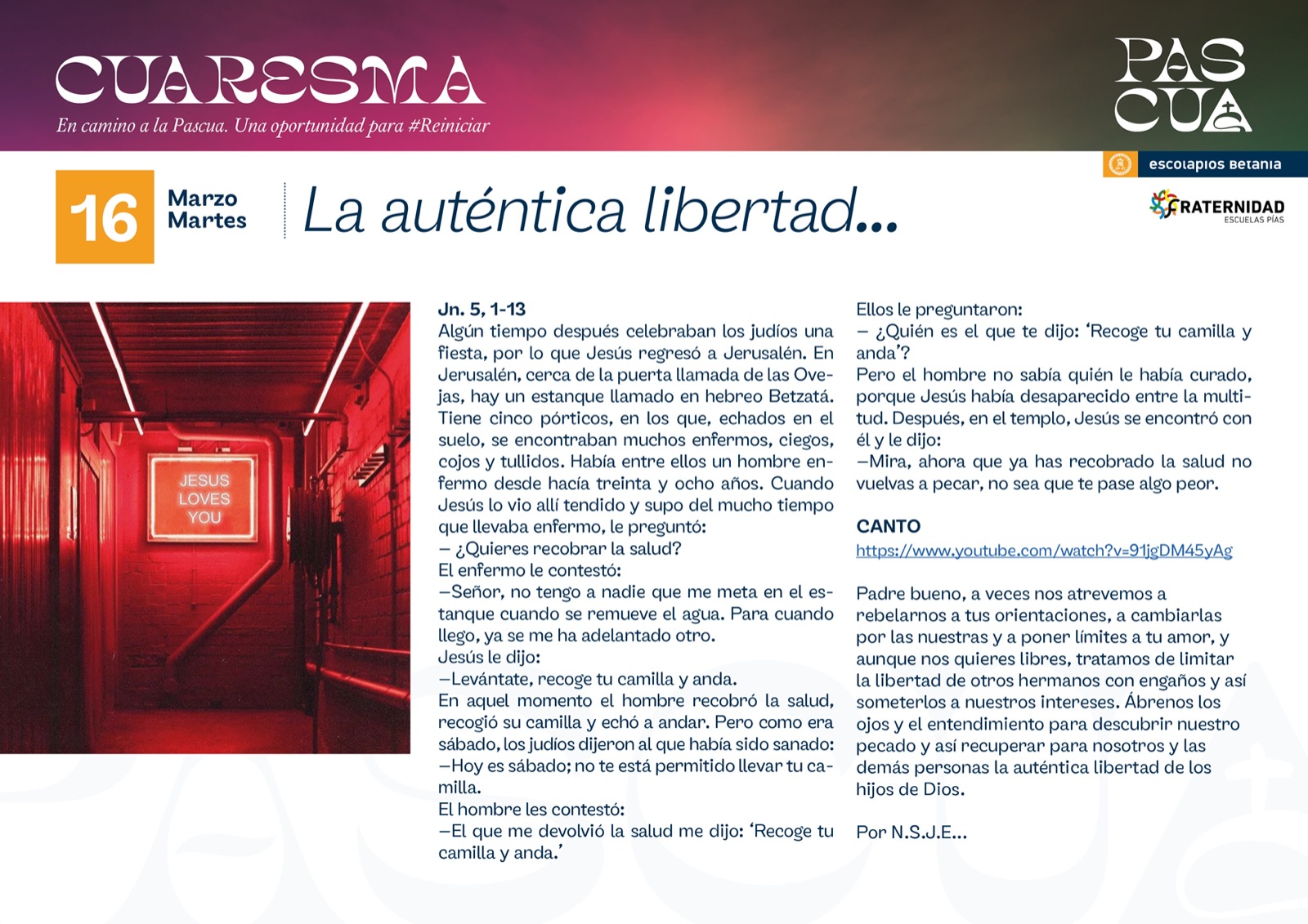 Iremos publicando las peticiones y acciones de gracias que recibamos al final de «la oración de los lunes». Y algunas, las volveremos a compartir en la eucaristía de la Comunidad Cristiana Escolapia (domingo a las 12:30 en la Iglesia Nuestra Señora de Aluche)