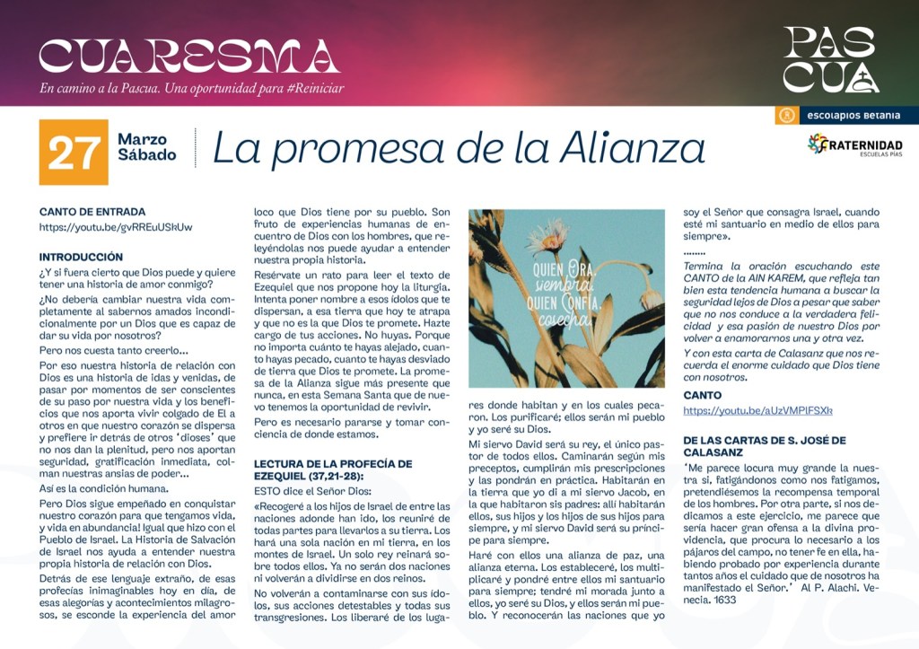 – LA PASCUA DESDE LAS ESCUELAS PÍAS PROVINCIA BETANIA